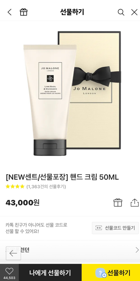 조말론은 바이레도처럼 고가의 백화점 브랜드인데요. 코로나 시대에서 손을 자주 씻을 수밖에 없는 현 상황에서 역시나 활용도가 높은 제품이죠. 청소년의 용돈으로 사기엔 부담스럽지만 선물을 받는다면 너무 좋아할 것 같습니다. ^^ 카카오톡 선물하기에서 선물하셔도 선물포장은 되어 배송이 되니 포장에 대한 걱정은 안하셔도 될 것 같습니다.