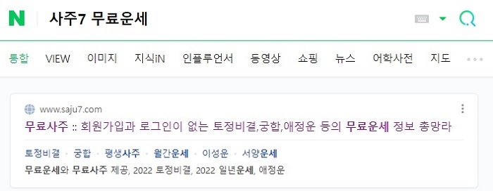 네이버에서 사주7 무료운세을 검색하여 홈페이지에 접속합니다.