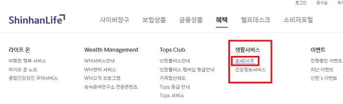 포털에서 신한라이프를 검색해서 홈페이지로 들어갑니다.